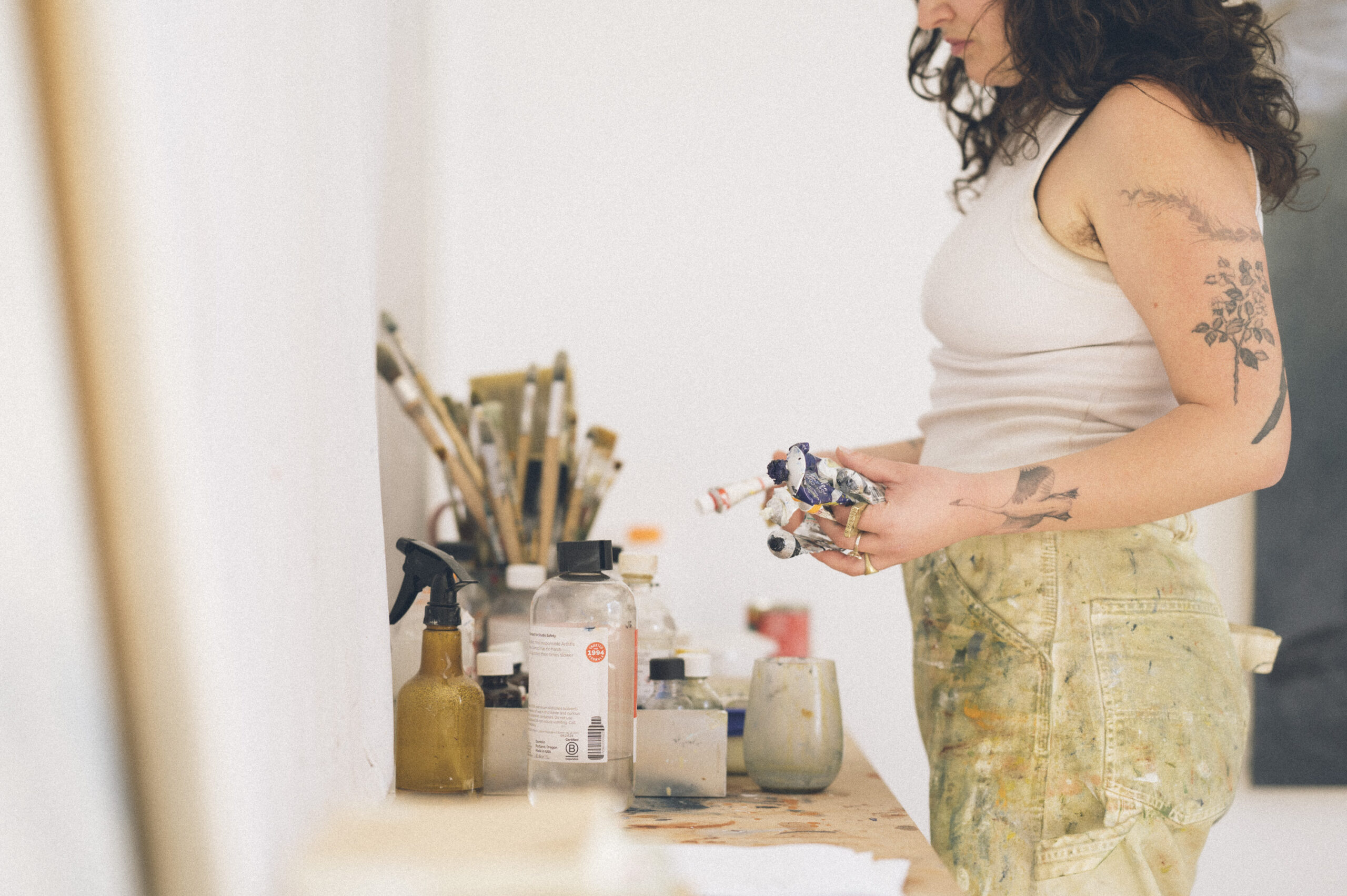 Ahead of her solo booth presentation with Jhana Millers at the Aotearoa Art Fair 2026, we spoke with Ruby about the early habits that shaped her, the shift from design into painting, and the routines, references, and pressures she’s navigating as an emerging artist finding her footing.