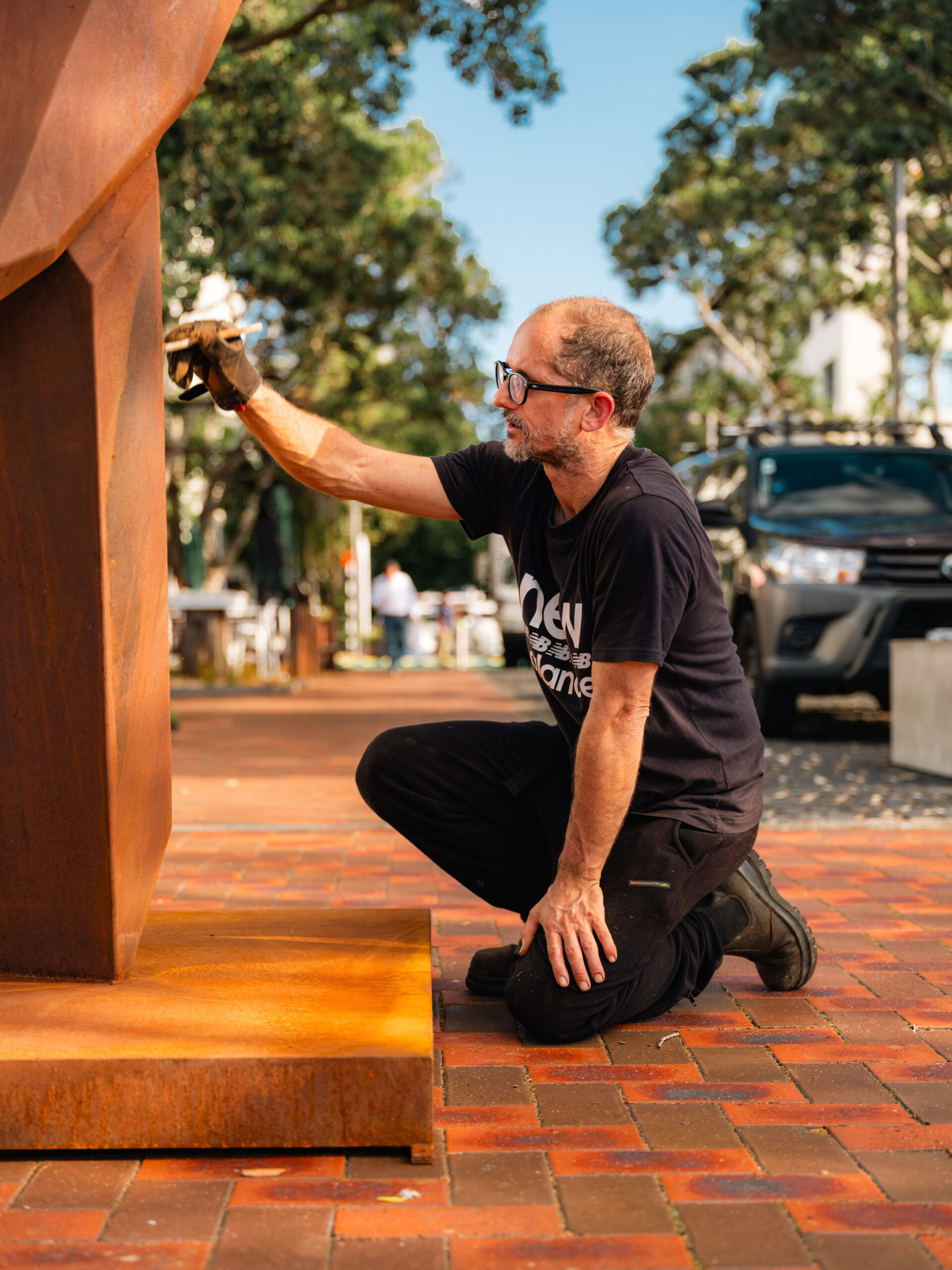 My next push is developing the symbiotic conceptual relationship from my small maquettes, to my paintings and drawings, then to my large works. One of those larger works is a commission for a very large floating sculptural work beside a home clad in Corten. On top of the I’ve got an exciting 2.4m bronze commission and a smaller Corten commission inspired by the work of